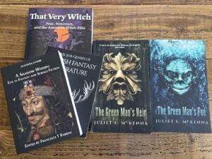 While imaginative tales take flight, they can also be grounding. Folklore was born from a desire to explain the unexplainable, bringing gods and tricksters to narratives to rationalise a complex world: folktales, myths and legends that bind people together to make sense of outside dangers, as well as to stay connected and rooted in cultural heritage, a form of resistance to powers that might seek to do harm to culture. Folklore as resistance preserves cultural identity, a form of activism in and of itself. For those of us who invent myth and legend in created worlds, we recognise the essential nature of its presence in fully realising the complexities of a new world. In writing Blood Gift Chronicles, creating folklore was a highlight for me, feeding into the rich tapestry of colour to create organically grown tales. Back to the conversation and folklore discussions inspired a purchase of two more editions to The Green Man series by Juliet McKenna.